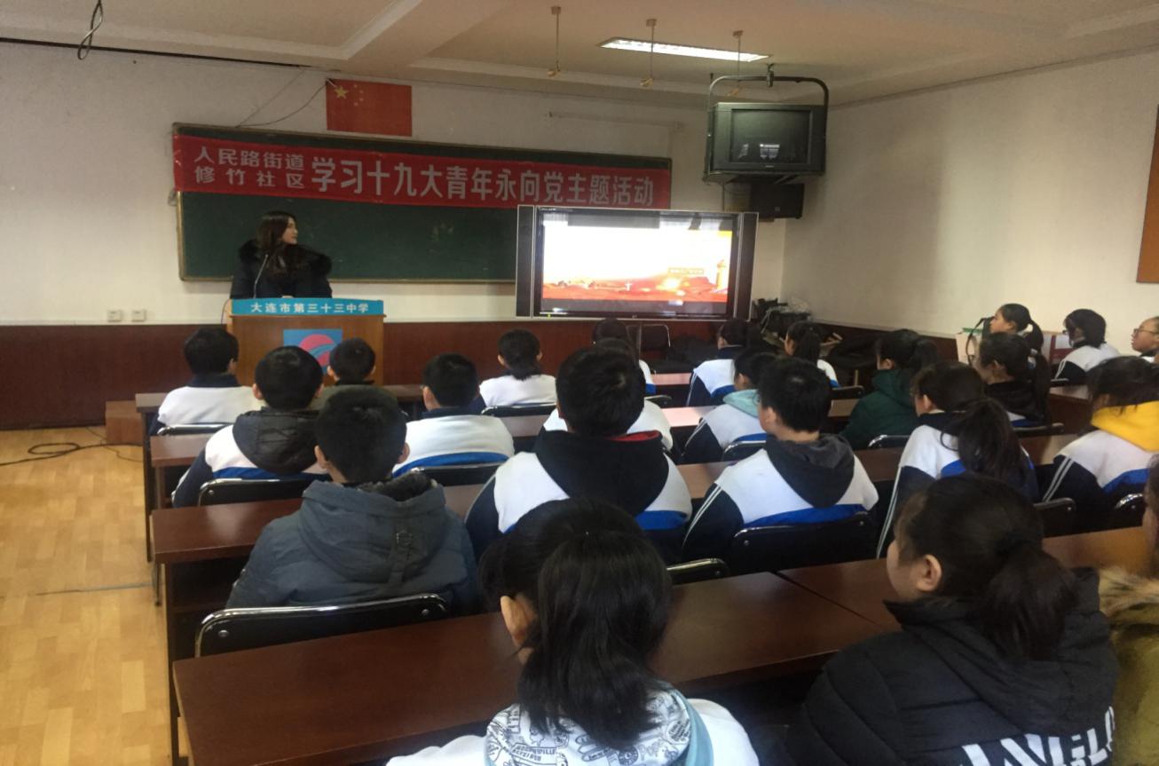 为深入学习宣传贯彻党的十九大精神,2018年1月11日下午,校“习近平新时代中国特色社会主义思想研究会”学生宣讲团成员李子玄在大连市第三十三中学为100余名学生做了题为《习近平新时代中国特色社会主义思想》的宣讲报告。