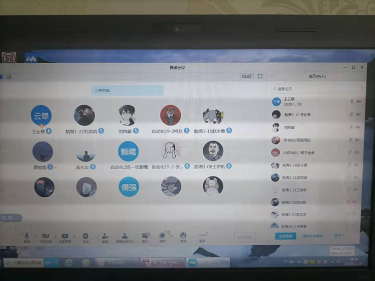 王云翠老师通过超星学习通、腾讯会议相结合方式讲授《毛泽东思想和中国特色社会主义理论体系概论》课,在授课的同时鼓励大家要保持平和心态、注意防护,希望同学们在遵守疫情防控规定、保证身体健康等方面的基本前提下,克服无法在教室、图书馆学习的困难,充分利用教材、网络、师生线上交流等方式,以积极乐观、充满信心的状态坚持学习。
