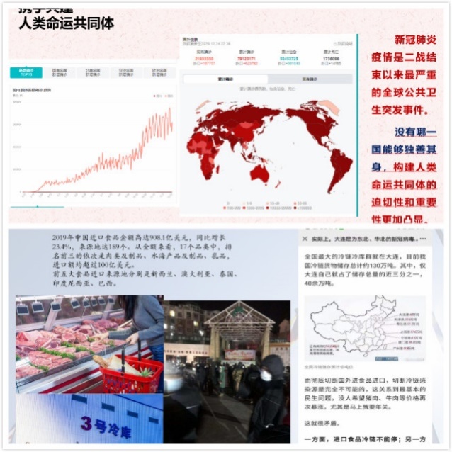 在《形势与政策》课堂,冯文艳老师通过腾讯会议和学习通相结合的方式授课,她从国内外疫情形势和大连市近期疫情暴发的原因着眼,通过启发学生思考“是否能够切断国外食品进口”的问题引入“携手共建人类命运共同体”专题教学,引导同学从全球疫情严峻背景下正确审视我国的抗疫形势,从我市在全国冷链存储业中发挥的巨大作用视角认识我市的疫情暴发。同时,也向同学们介绍了当前浦京官网的疫情防控工作,表达了对一线抗疫“大白”们的敬意,号召同学们乐观向上、积极配合、做好防护,相信我们大海大人众志成城、携手抗疫,终将迎来最后的胜利!