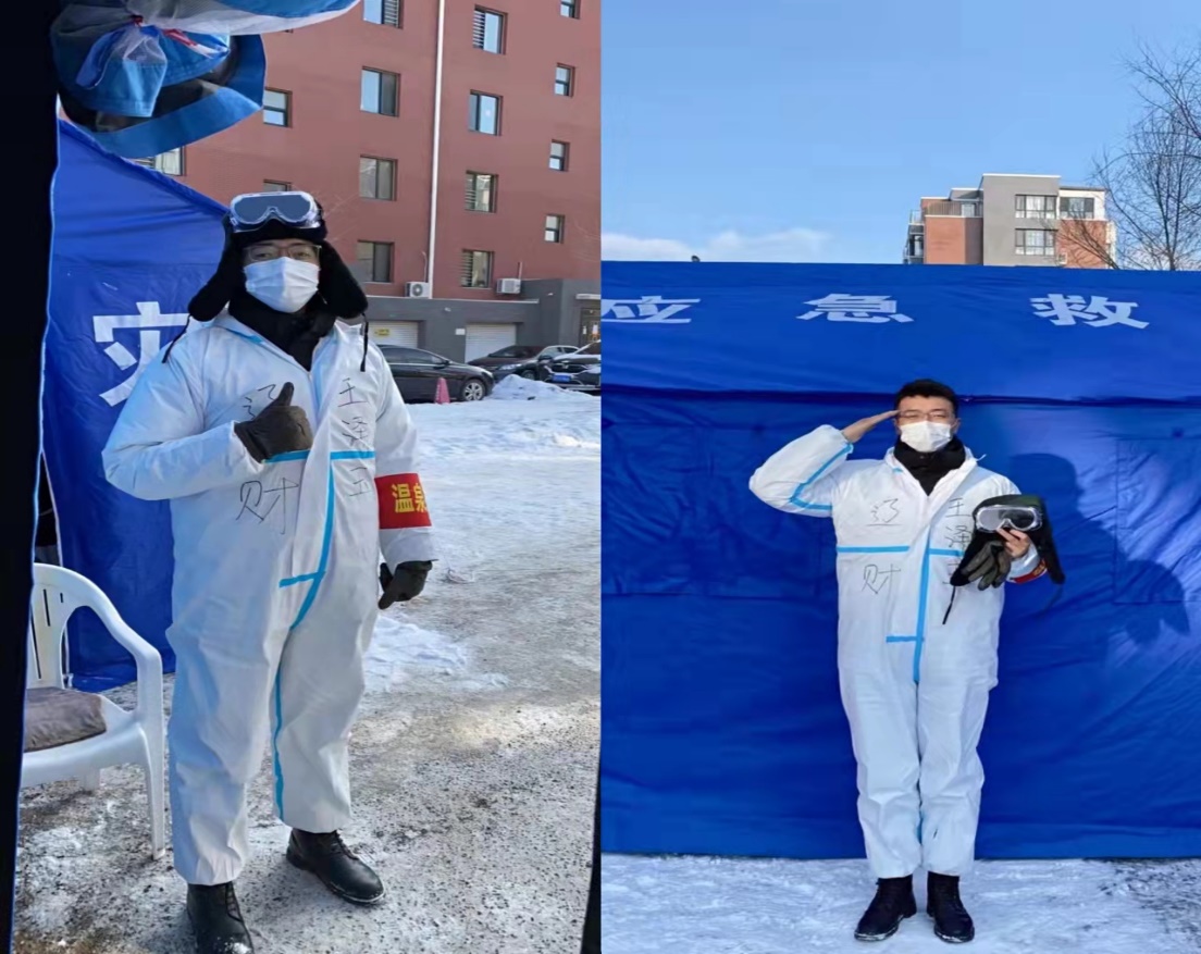 王泽玉同学在葫芦岛兴城市积极参与当地的抗“疫”工作,加入到疫情防控队伍中,排查登记出入车辆的信息,查看来往人员通行证并为他们测量体温,劝导居民不外出、扎堆、勤洗手、勤消毒,用实际行动证明当代青年人的担当。